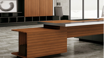以原木作为材料的高级班台,洋溢着浓郁的自然气息,清峻、平和的造型里涓滑而出的时代特质,给现代办公空间更添几分悠闲。